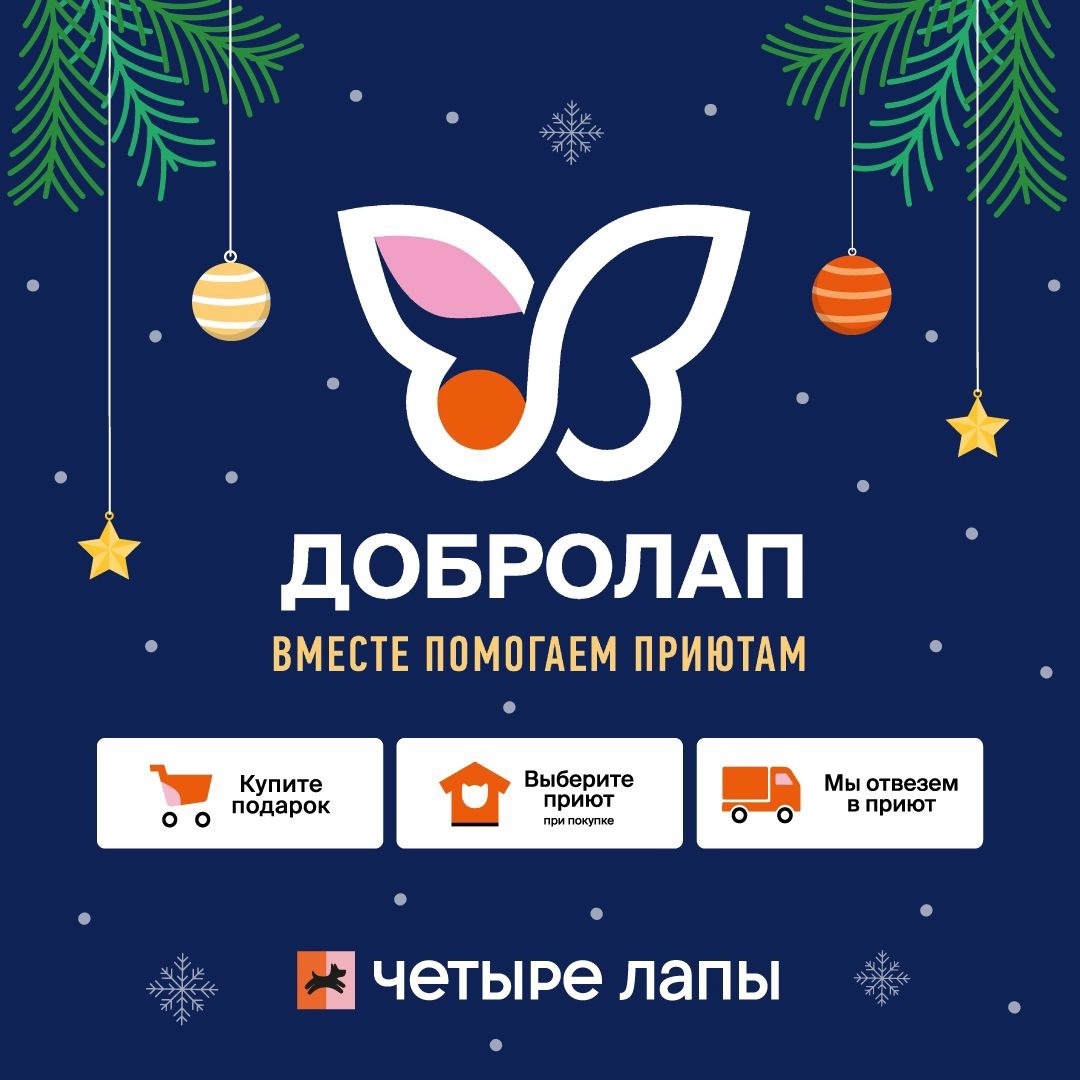 Друзья, с 10 декабря по 12 января в магазинах Четыре Лапы пройдет благотворительная акция “Добролап”!